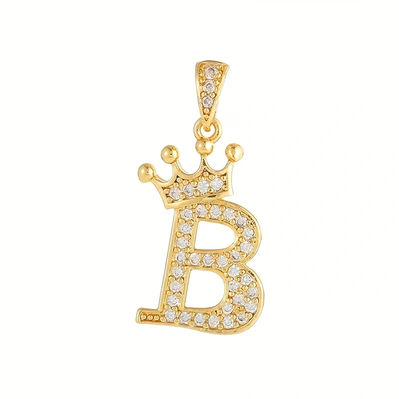 Prívesok s iniciálkou B s korunkou– pozlátený 18K zlatom so zirkónmi