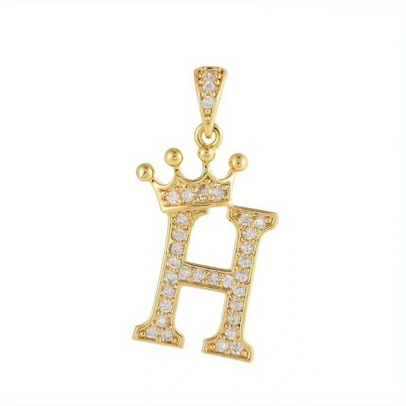 Prívesok s iniciálkou H s korunkou– pozlátený 18K zlatom so zirkónmi