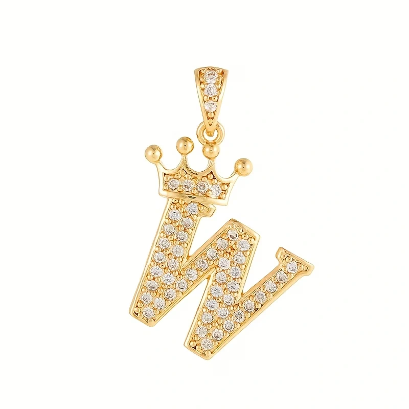 Prívesok s iniciálkou W s korunkou– pozlátený 18K zlatom so zirkónmi