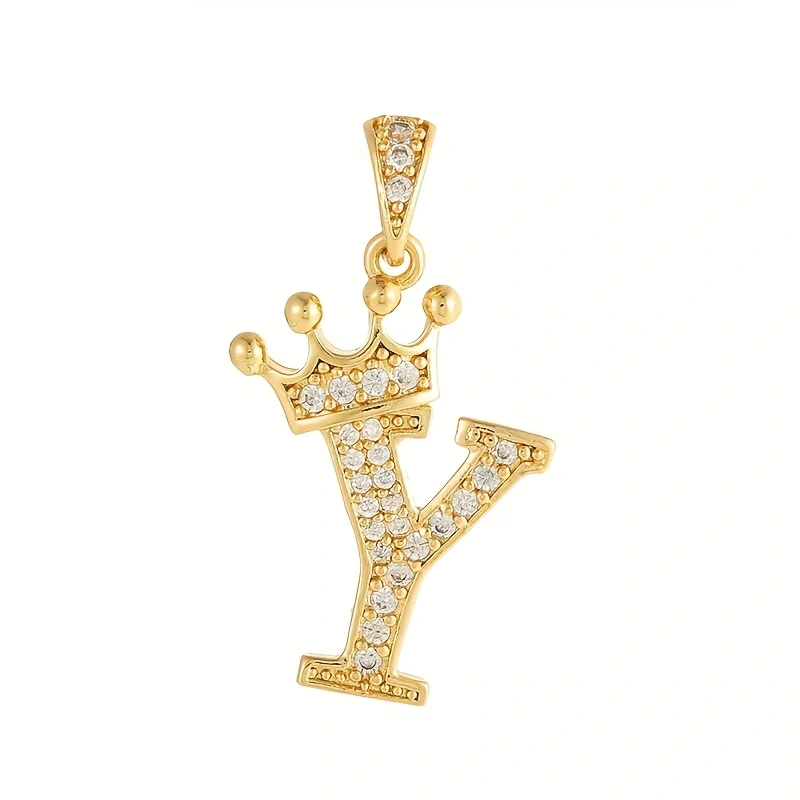 Prívesok s iniciálkou Y s korunkou– pozlátený 18K zlatom so zirkónmi