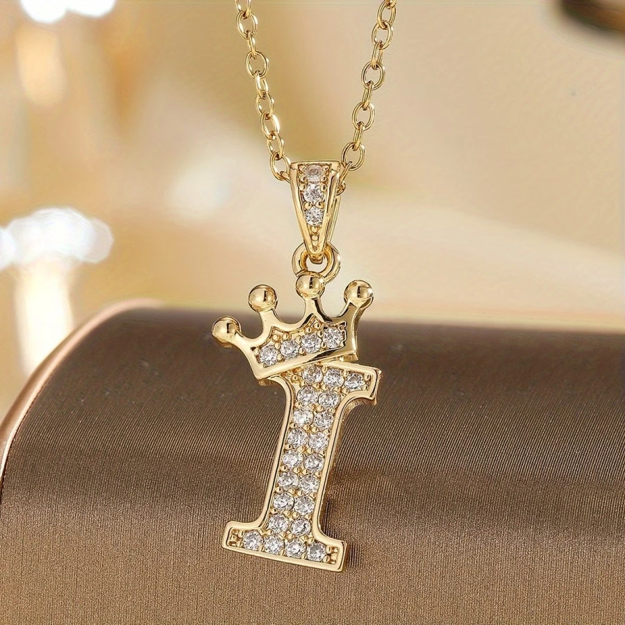 Retiazka s iniciálkou I s korunkou – pozlátená 18K zlatom so zirkónmi