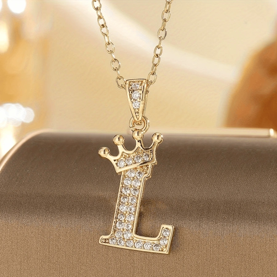 Retiazka s iniciálkou L s korunkou – pozlátená 18K zlatom so zirkónmi